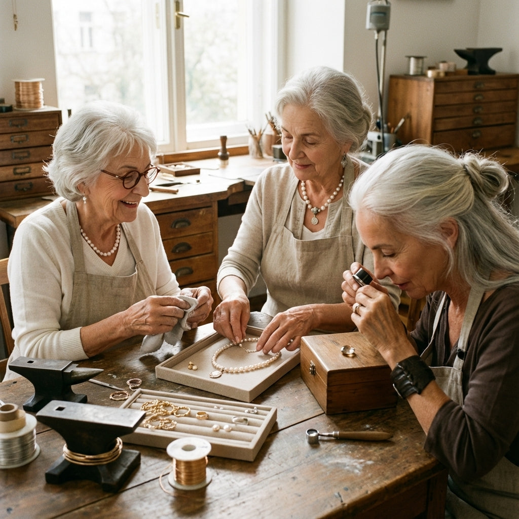 This is us in the little workshop where it all began, three sisters learning by doing, sharing tools and staying late to get one more detail right. We never set out to build a brand; we just wanted to make pieces we were proud to wear. Thirty five years later, we are still here, side by side, with the same hands and the same quiet determination behind every design.